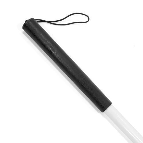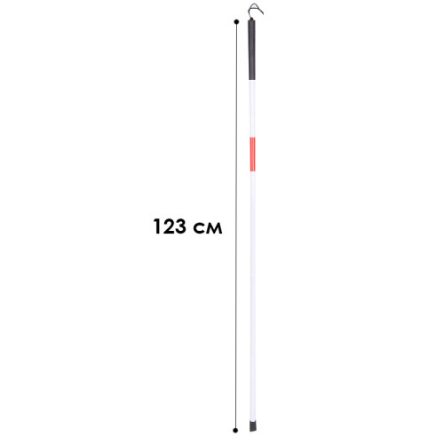 Как и положено - у нее есть петелька для одевания на руку, чтобы не уронить на землю и не потерять. Ручка, за которую трость держат - из нескользящего и приятного на ощупь материала. Для её большей заметности со стороны, на трость нанесен маркер ярко-красного цвета.