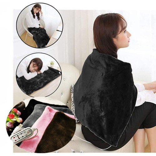 Плед шаль Lesko 100*65 Black одеяло с подогревом usb от повербанка