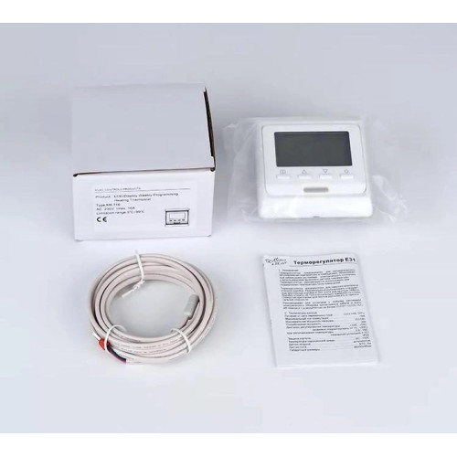 В комплекте с регулятором поставляется выносной температурный датчик длиной 3 метра. Номинал термодатчика - 10 кОм при 25°С. Датчик монтируется непосредственно в пол в гофротрубку 9/12 которая в комплект к терморегулятору не входит.