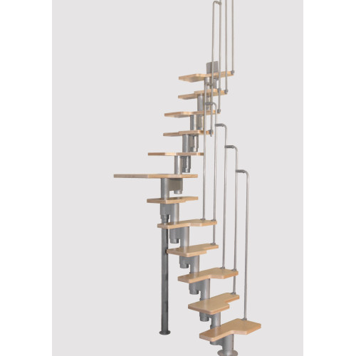 Маршевая, модульная лестница с перилами и ступеньками «гусиный шаг» для ограниченного пространства.