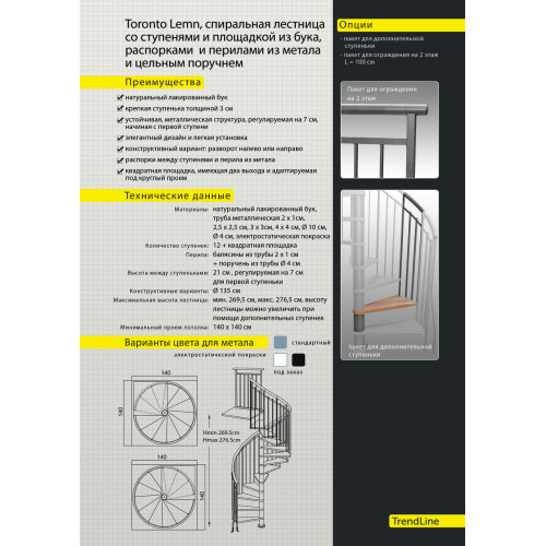 Винтовая лестница TORONTO LEMN бук Ø135 см