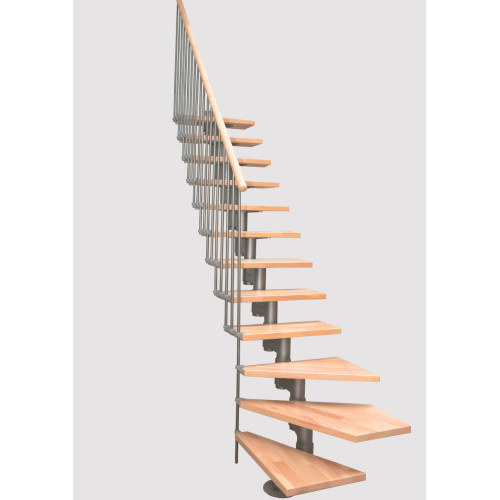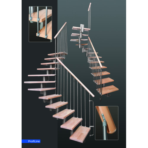 Маршевая, модульная лестница с изгибом и перилами.