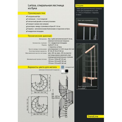 Винтовая лестница LARISSA NEW бук Ø 120 см