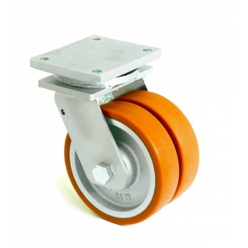Эксплуатационные характеристики: Сдвоенные большегрузные колеса с полиуретановой ошиновкой применяются при необходимости перемещать максимально тяжелые грузы на абсолютно ровной поверхности. Колеса серии «58» применяются для перемещения станков и различных тяжелых механизмов на скорости до 4 км в час и используются внутри помещений.