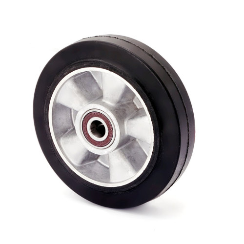 : Основание колеса изготовлено из алюминия. В колесе установлены два прецизионных шариковых подшипника. Эластичная литая резиновая шина изготовлена из специальной резиновой смеси и вулканизирована на алюминиевое основание. Твердость 68±2 Shore A.