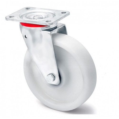 Колесо поворотное из полиамида УСИЛЕННОЕ “EXTRA LARGE” - изготовлено методом литья из полиамида. Используется в агрессивной среде (химические производства, магазины, строительство).изготовлено методом литья под давлением из высококачественного «полиамида 6» белого цвета. В колесе установлены два шариковых подшипника. При производстве полиамида используются исключительно первичные материалы. Вторичное сырье не допускается.Эксплуатационные характеристики: Большегрузные колеса из полиамида обладают высокой механической прочностью и низким сопротивлением качению, они коррозионно-устойчивы и противостоят воздействию множества агрессивных химических веществ и соединений. Колеса и ролики серии «22» применяются в строительной индустрии, химических производствах, подъемных механизмах и различном транспортном оборудовании. Из всех большегрузных колес и роликов серия «22» имеет самое низкое ценовое предложение и массово используется на строительных лесах и оборудовании для транспортировки стекла и его производных. Колеса серии «22» эффективно эксплуатируются исключительно на ровных бетонных и наливных полах.