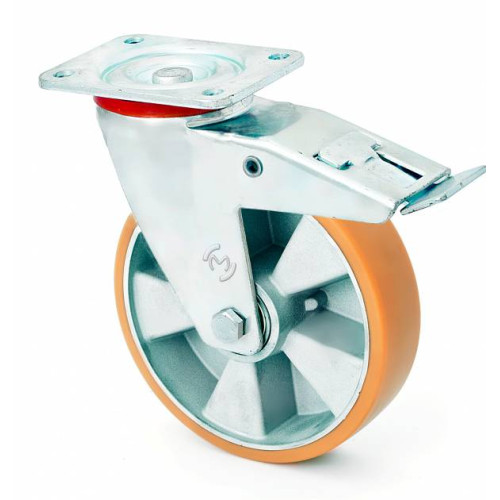 Колесо KAMA поворотное Standart с крепежной панелью и тормозом 160 мм (4404-ST-160-B)