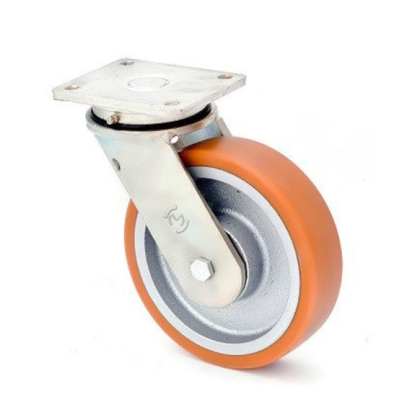 Колесо поворотное KAMA STRONG с крепежной панелью и тормозом 200 мм (4504-STR-201-B)