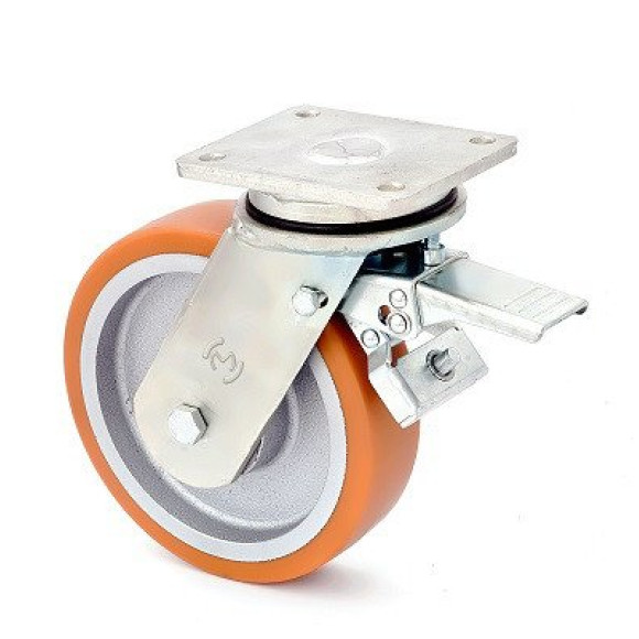 Колесо поворотное KAMA STRONG с крепежной панелью и тормозом 200 мм (4504-STR-200-B)