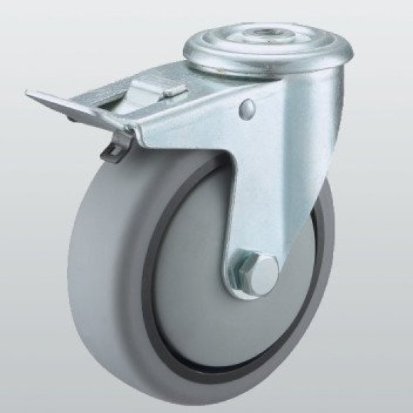 Аппаратное колесо SNB поворотное с отверстием и тормозом 125 мм (3006-S-100-P)