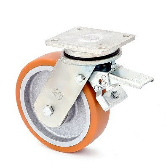 Колесо поворотное KAMA STRONG с крепежной панелью и тормозом 200 мм (4504-STR-200-B)